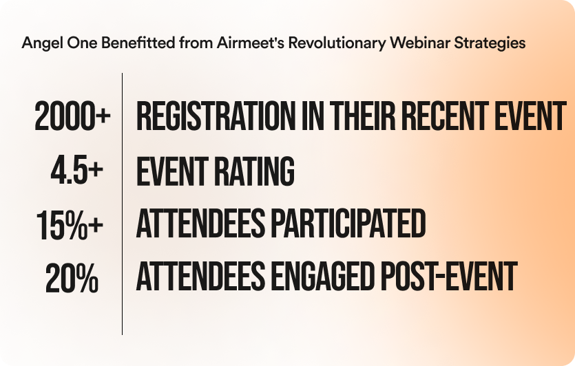 Airmeet’s structured event formats proved instrumental for Angel One in effortlessly creating and managing webinars and other online events. The virtual event platform’s exceptional branding features empowered Angel One to