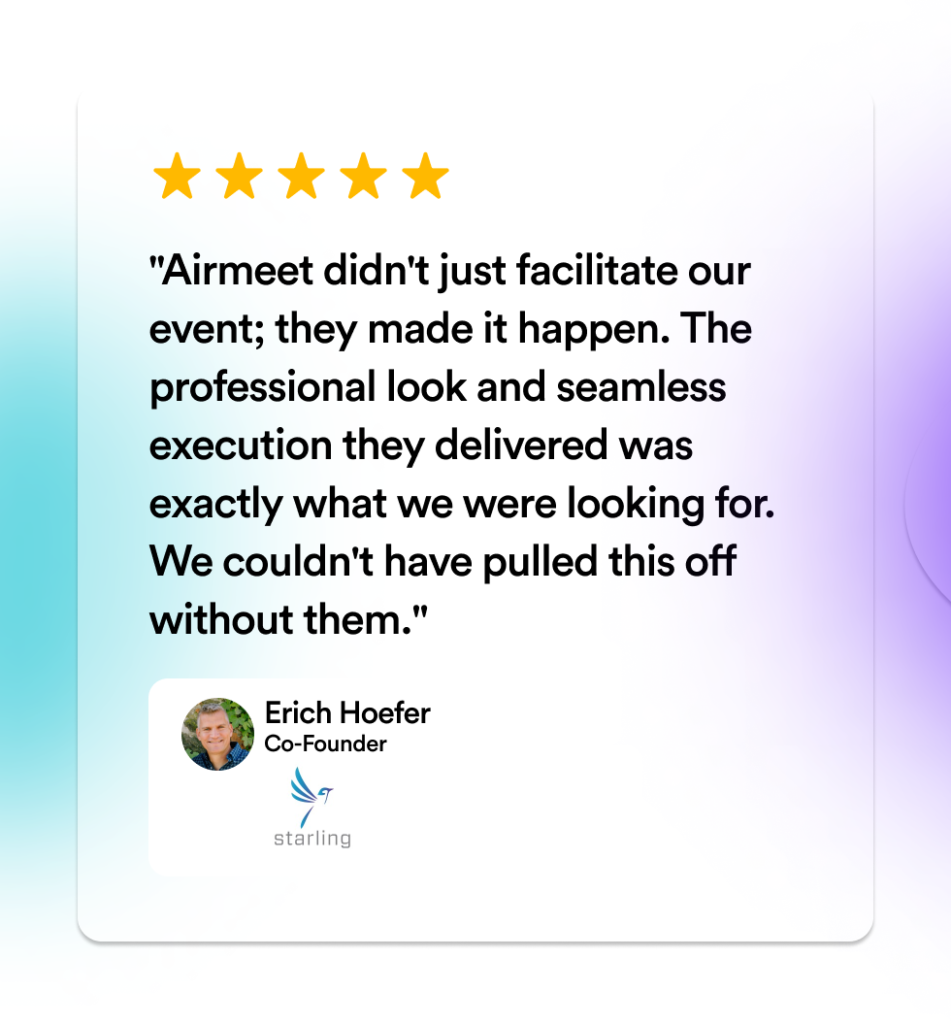 Erich Hoefer expressed his satisfaction: “Airmeet didn’t just facilitate our event; they made it happen. The professional look and seamless execution they delivered was exactly what we were looking for. We couldn’t have pulled this off without them.”